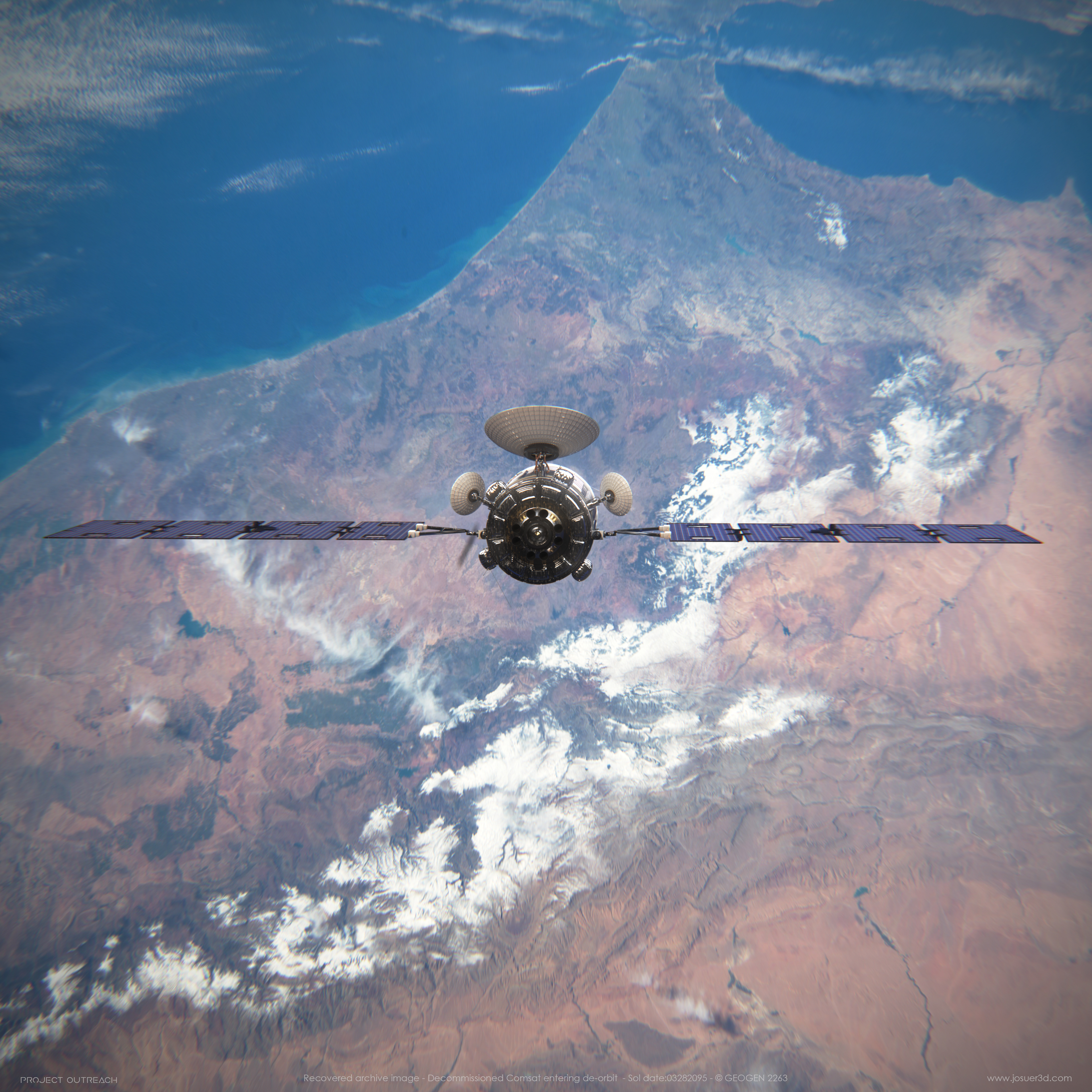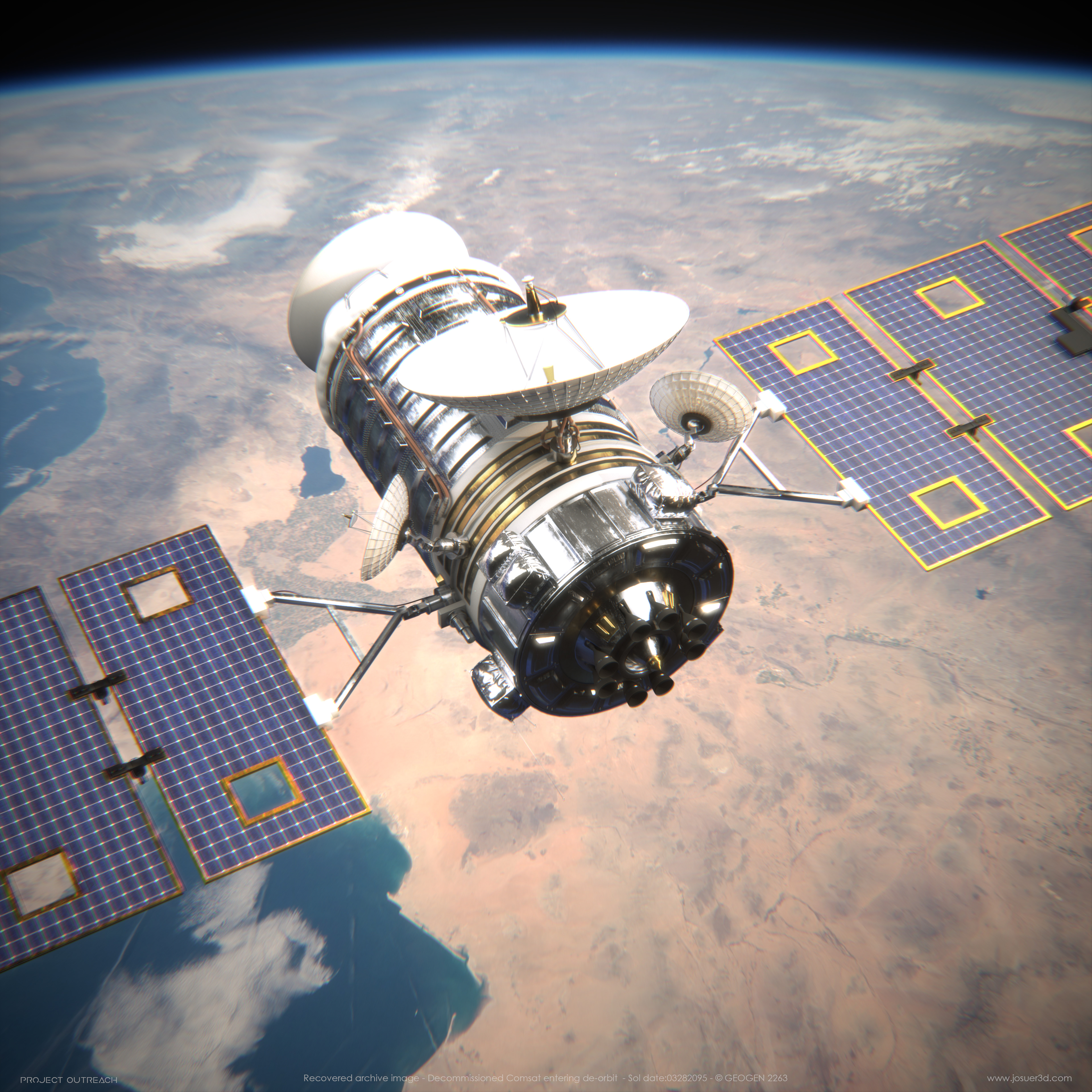 Sol date:03282090 Orbital defense drone captures a decommissioned US defense communications satellite as it enters de-orbit.