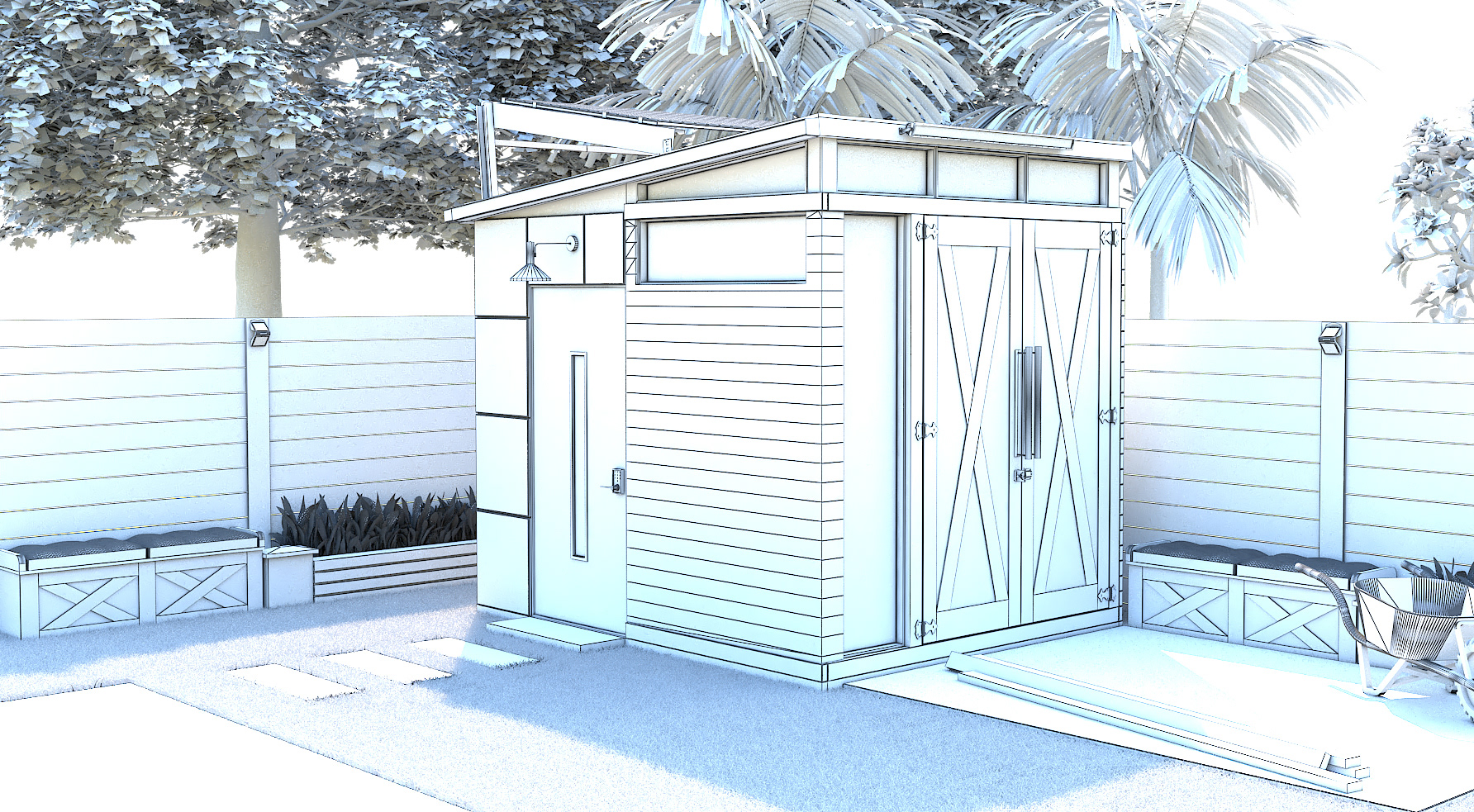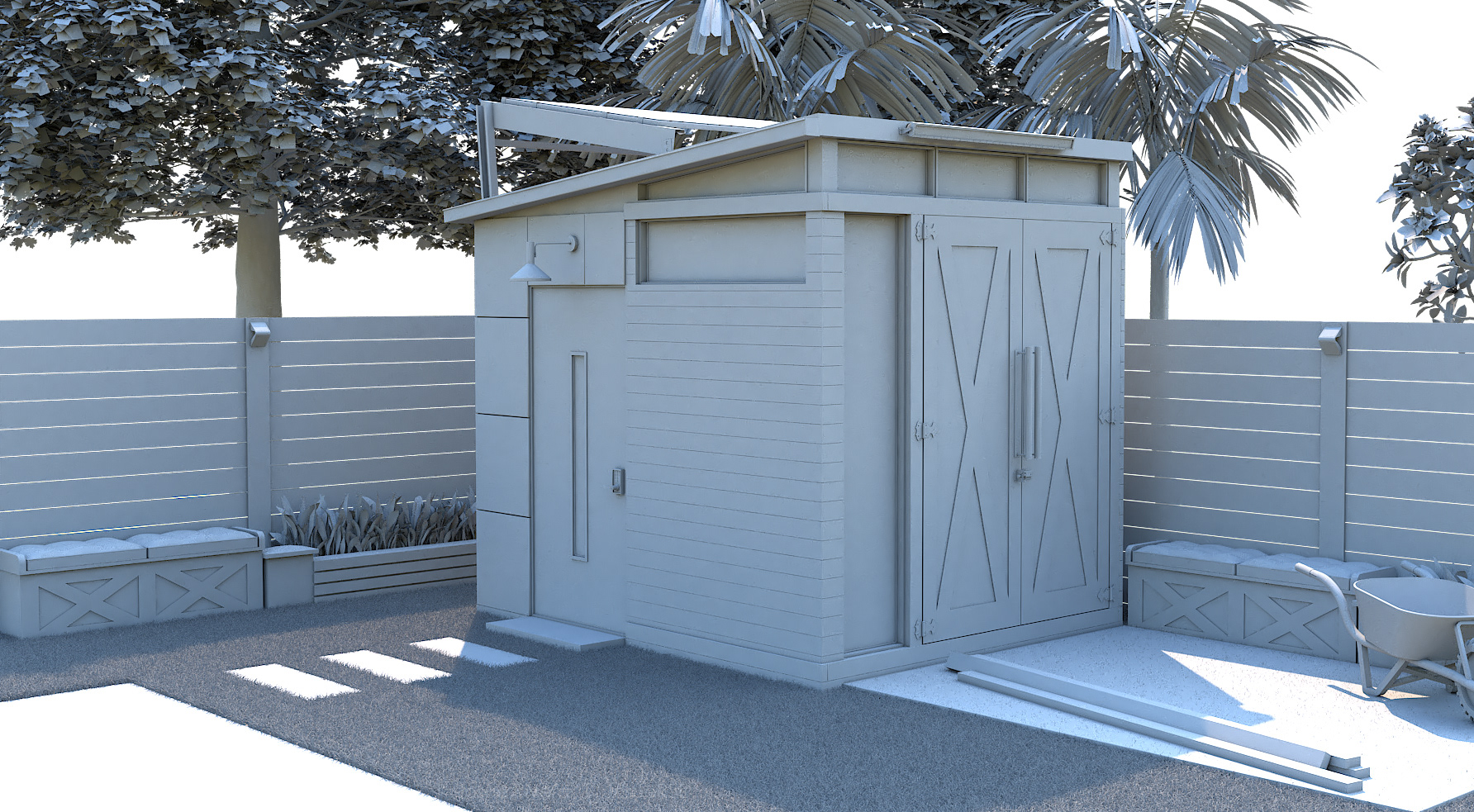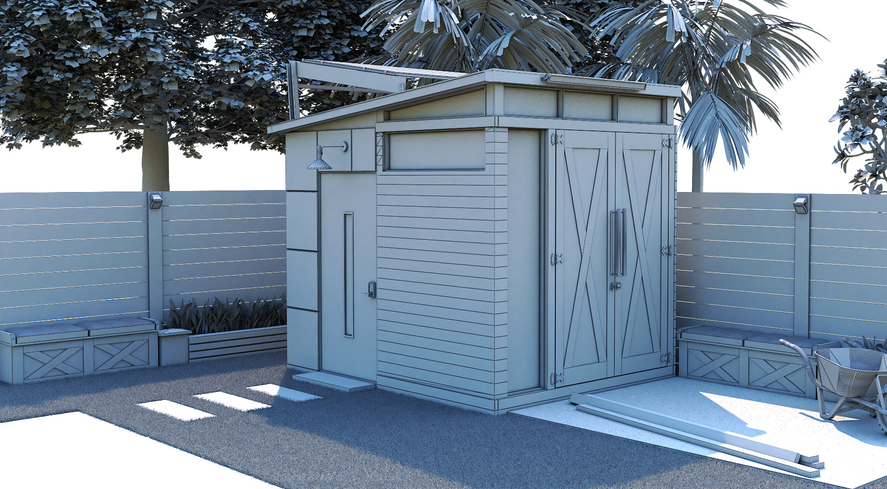 Shed Concept designed for a diy project I plan to start soon. Created in Sketchup Pro and rendered in Vray. Final post in Photoshop.